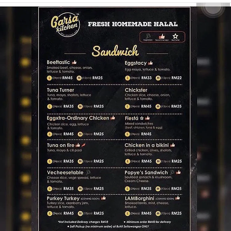 Garsa Kitchen Malaysia is famous for its flavorful sandwiches, with top picks like Eggstacy, Chickster, Beeftastic, Tuna Turner, Salted Egg Chicken, and Steak & Cheese. These signature items are loved for their generous fillings and delicious taste, making them the highlight of the menu. Customers also enjoy their fiesta boxes, which combine several popular flavors in one set, perfect for sharing during parties or gatherings.